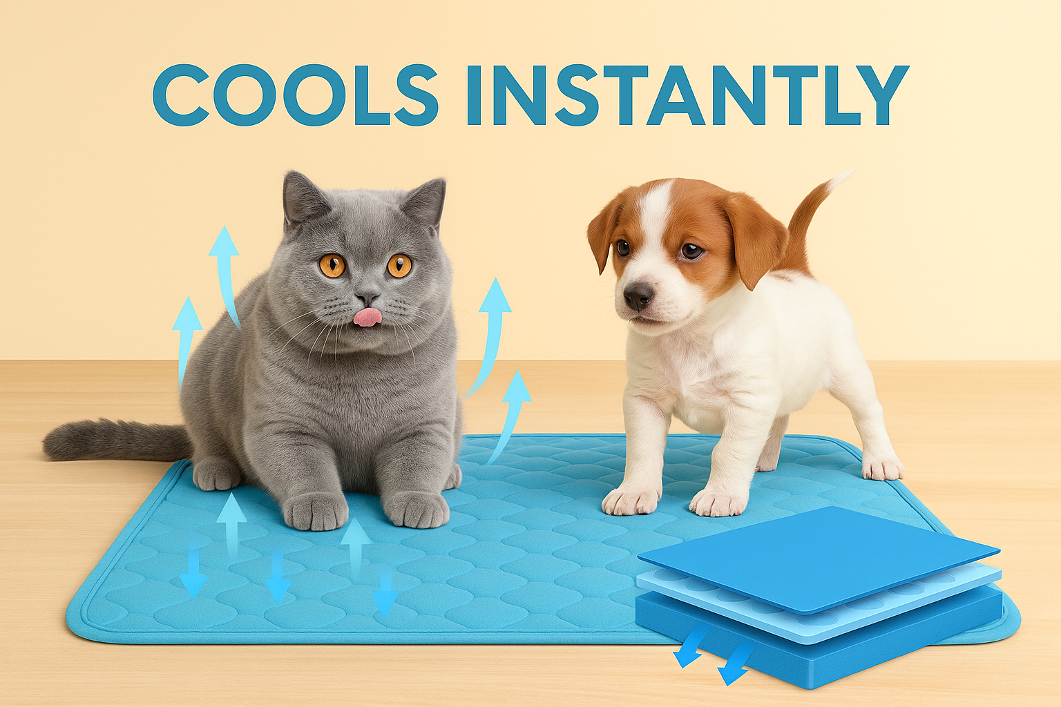 Realizzato in materiale rinfrescante ad attivazione automatica, questo tappetino offre una superficie fresca, traspirante e confortevole per ore, senza bisogno di acqua, elettricità o congelamento. Basta posizionarlo sul pavimento e il gioco è fatto: il tuo gatto o cane troverà immediato sollievo!