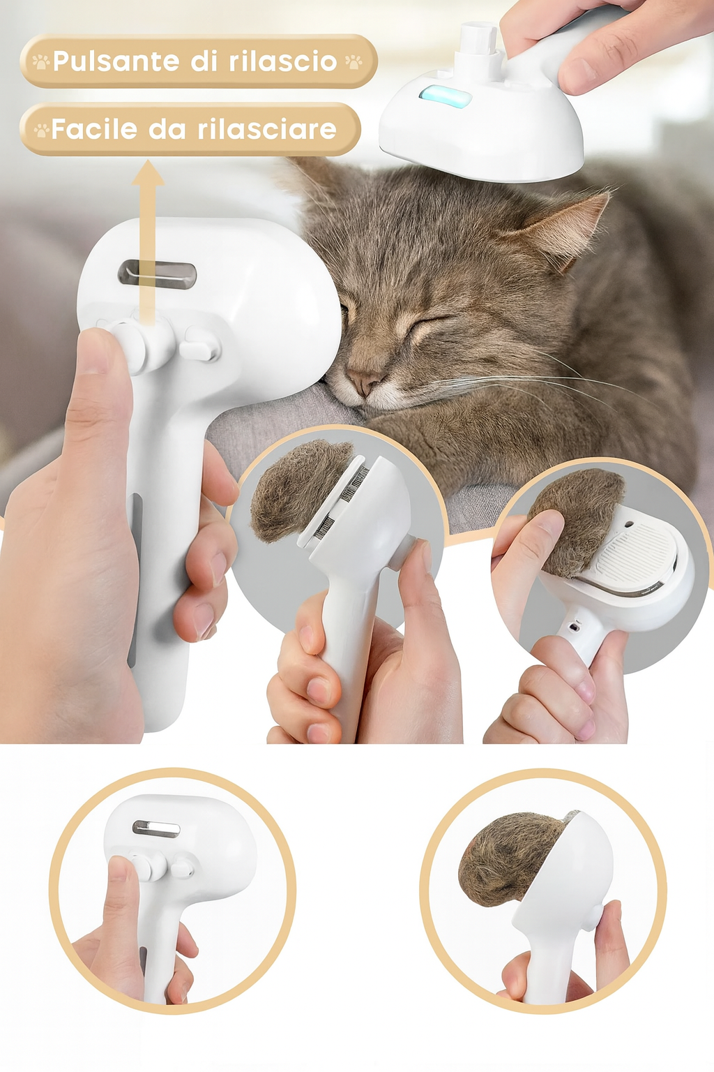 Con la Spazzola 3 in 1 a Vapore, la cura del pelo diventa semplice, veloce e piacevole: il tuo animale sarà sempre pulito, rilassato e felice! 🐶🐱