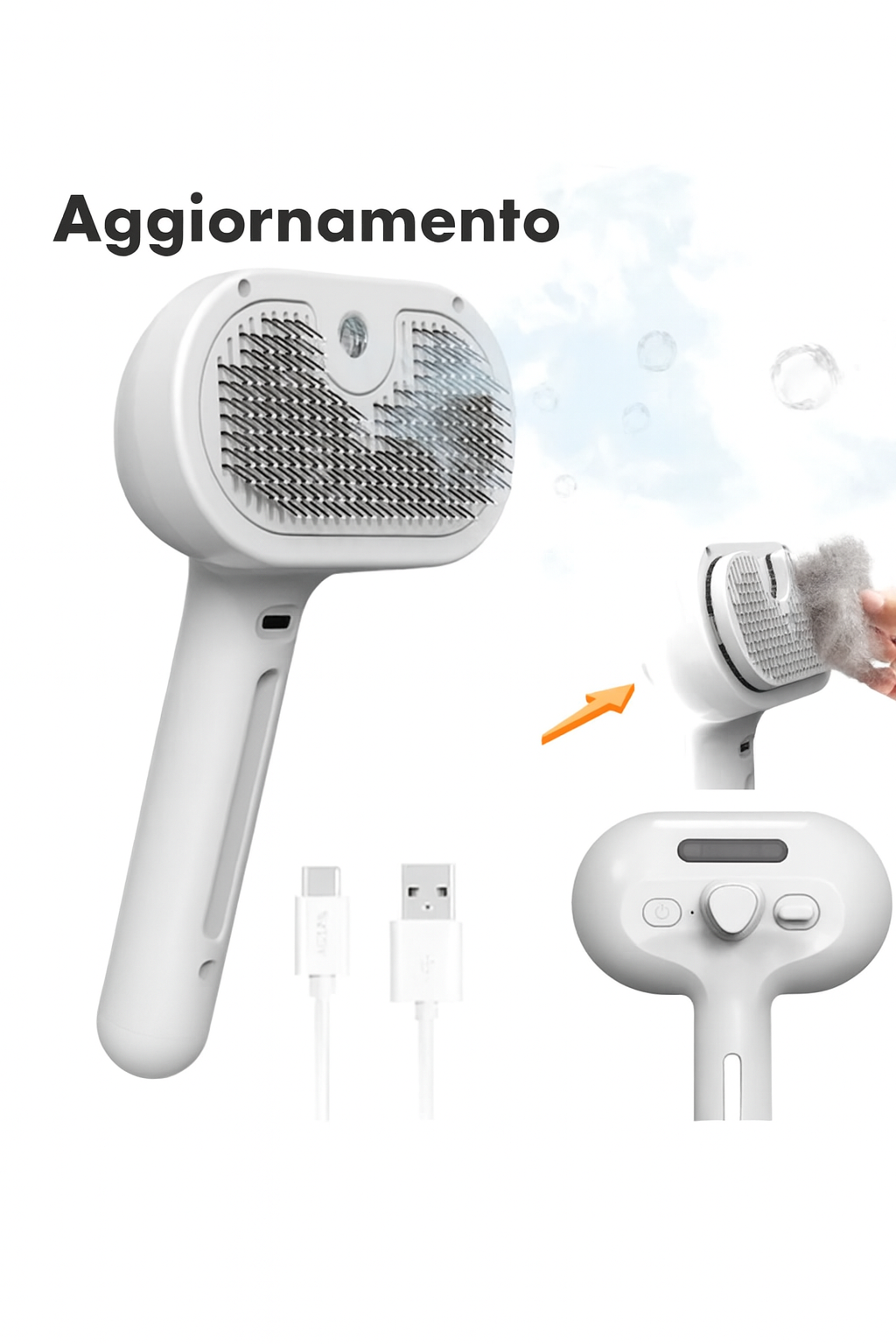 Spazzola Elettrica 3 in 1 per Cani e Gatti | Vapore, Massaggio e Rimozione Peli