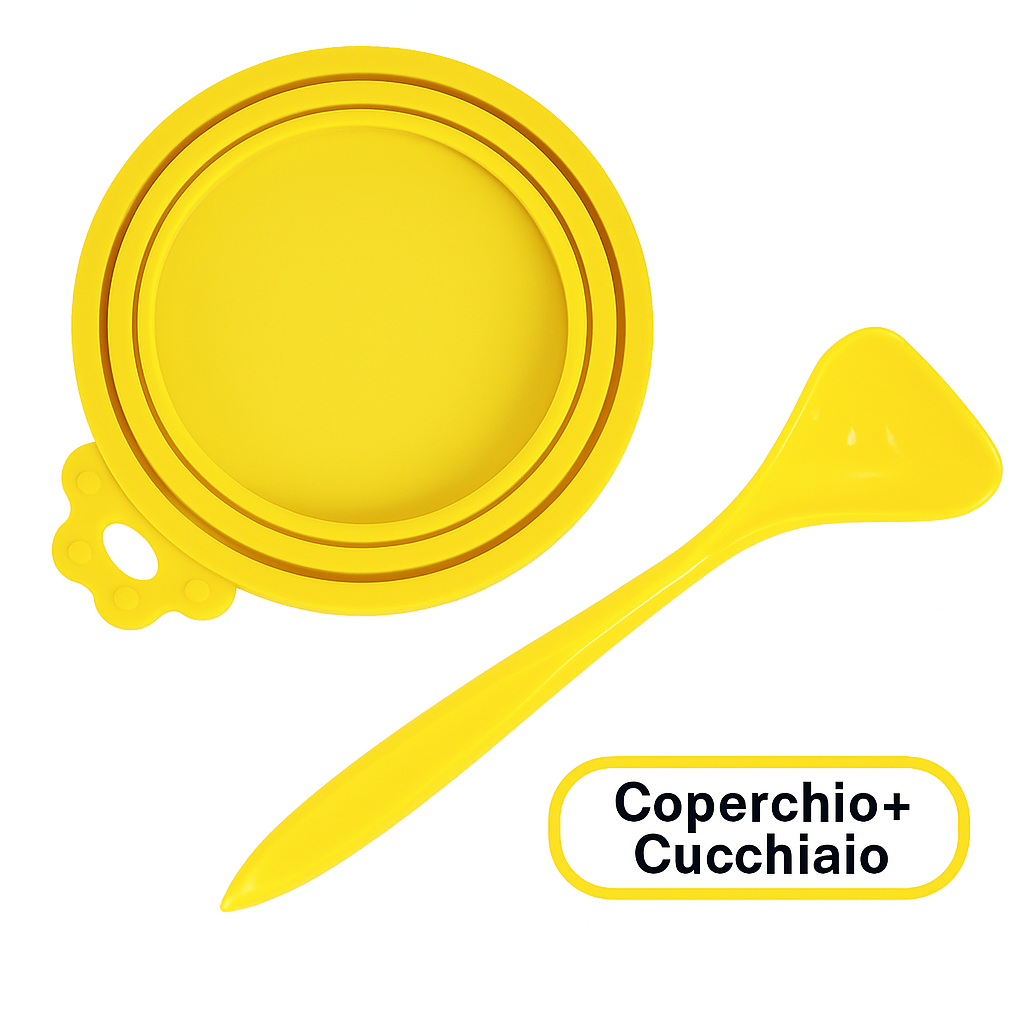 Mantieni il cibo del tuo amico a quattro zampe sempre fresco e sicuro con il Coperchio in Silicone Riutilizzabile con Cucchiaino.